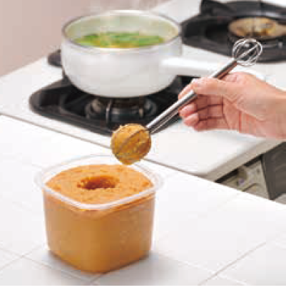 18-8 計量みそマドラー LS-1500は、大は約大さじ2杯、小は約大さじ1杯の計量が可能です。そのまま鍋の中でかき回せば味噌がきれいに溶けます。なお、卵ときや、マドラーとしても使用できて便利です。