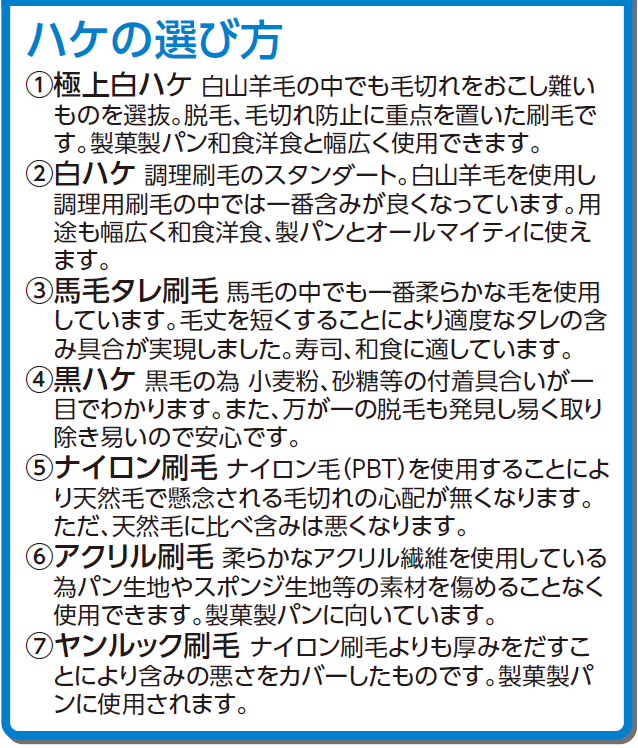 馬毛と山羊毛8種類