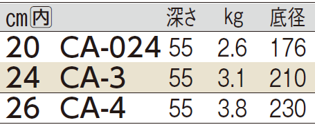 - ●サイズ種類:20、24、26cm の3種類