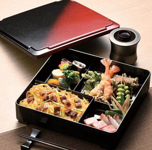 | f8-0780-007 8寸 戦国弁当(固定仕切) 朱黒ぼかしSH塗 245×245×H60mm |