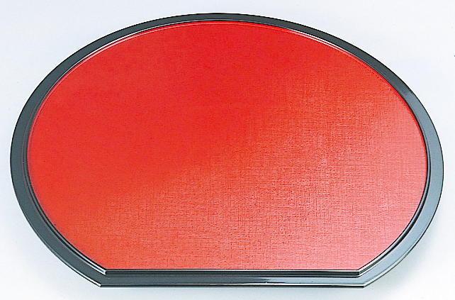 雲竜両面半月盆 黒SLタタキ白乱糸/裏布目朱渕黒は、両面使えて便利な半月盆です。表裏は色違いなので、季節ごと、料理ごとに使い分ければ、1枚で2枚分の働きができます。材質はABS樹脂です。耐久性に優れ衝撃に強く割れにくく、塗料の密着も良好ですが、食器洗浄機には使用できません。