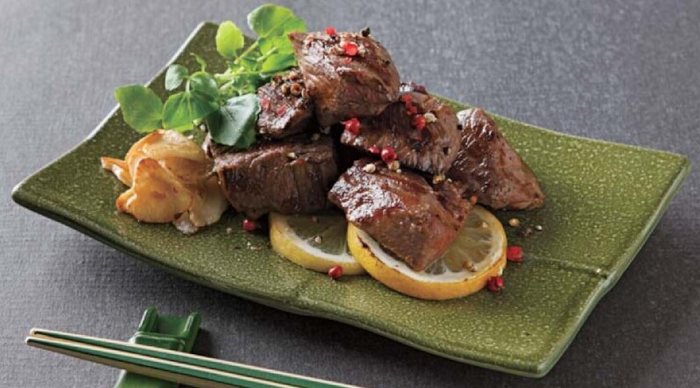 6.5寸 市松焼物皿 タタキヒワ青磁は、和食料理の一つ、焼物を盛り付けるお皿です。陶器調ですが、材質は耐熱樹脂なので軽くて割れ難く安心です。食器の破損を避けたいシチュエーションで活躍します。見た目は高級感があり陶器と遜色ありません。食器洗浄機対応なので、営業用に最適です。