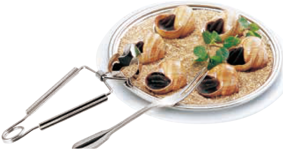 エスカルゴフォーク:小さな二又フォークで、殻の中の身を取り出す