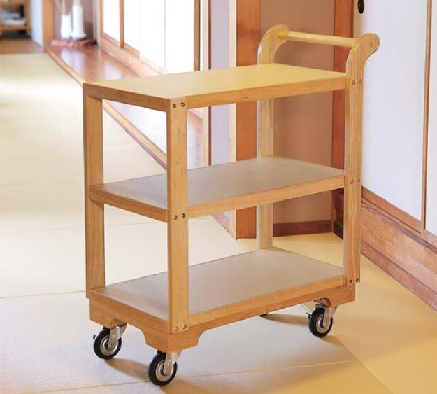 サービスワゴン 白木は、レストラン内で食事の配膳、下げ膳に活躍します。木製なので落ち着いた雰囲気があります。