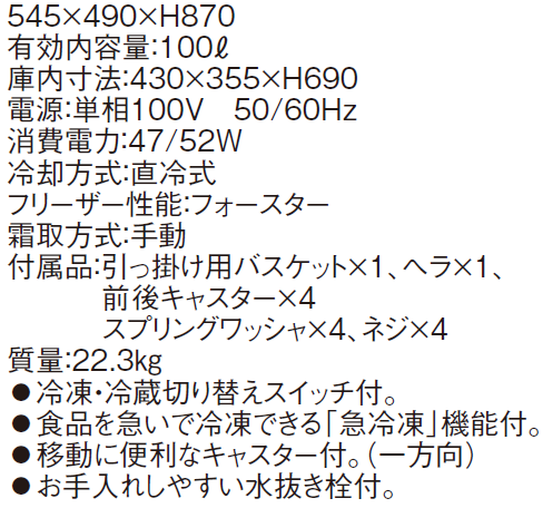 ハイアール 上開き式冷凍庫JF-CW10A(W)は、中国製ストッカーです。リーズナブルな冷凍庫です。