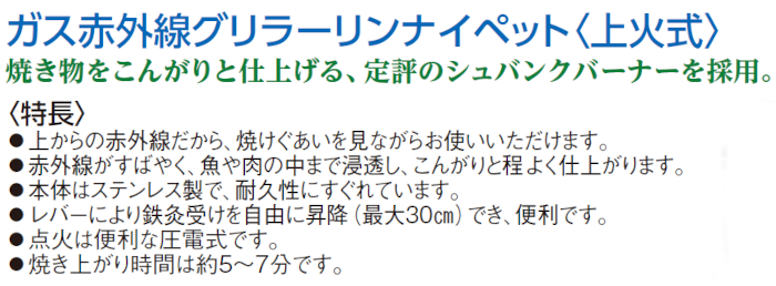 ガス赤外線グリラー リンナイペット(上火式)大 RGP-46SV