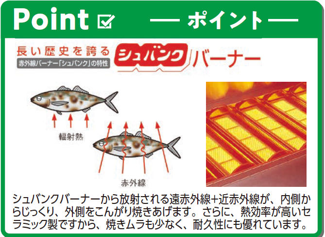 リンナイ ペットは、業務用上火式グリラーの定番商品です。信頼のリンナイ製です。上火式なので魚の皮が剥がれにくくきれいに焼けます。圧電点火式なので点火が楽です。