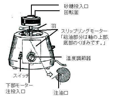 7使用後は前面コントロール、ツマミを10にして残ったザラメを全部出してから停止して下さい。回転部ホッパーは取外さないこと。