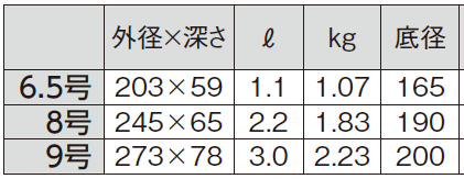 18cm(6号)⇒1人用、21cm(7号)⇒2人用、 24cm(8号)⇒3人用、27cm(9号)⇒4人用、30cm(10号)⇒5人用