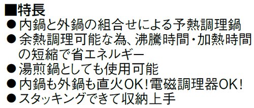 ニューグッドベンリ―余熱調理機は、内鍋と外鍋の組み合わせによる余熱調理が可能です。また、湯煎調理なべとしても使用可能なので用途が広がります。
