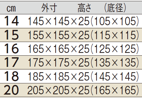 JAN 1-2108-0501 アルミ 槌目付角ナベ 14cm 4905001208584 1-2108-0502 アルミ 槌目付角ナベ 15cm 4905001208591 1-2108-0503 アルミ 槌目付角ナベ 16cm 4905001208607 1-2108-0504 アルミ 槌目付角ナベ 17cm 4905001208638 1-2108-0505 アルミ 槌目付角ナベ 18cm 4905001208645 1-2108-0506 アルミ 槌目付角ナベ 20cm 4905001208652