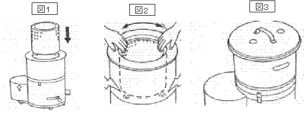 使用上の注意 1.回転の際は必ず付属のフタをご使用下さい。 2.回転シリンダーが回転中は、手を入れないで下さい。(図4)