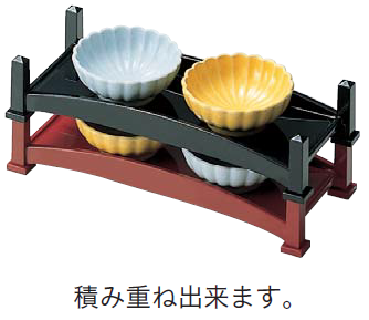 錦盛橋 ブラウンは、前菜の盛り付けに便利な細長い器です。少量を数品盛り付けられます。材質の耐熱ABS樹脂は、軽くて衝撃に強く割れにくく耐久性に優れています。盛箱用小鉢パーツもあります。