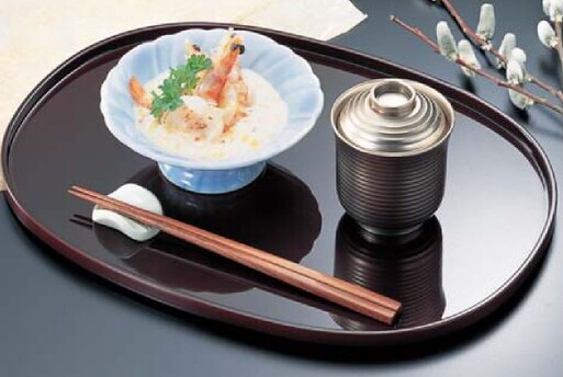 小判盆 溜SH塗は、溜色が印象的な楕円形のお盆です。小判型にデザインされていますので、和洋中どちらでも使用できます。