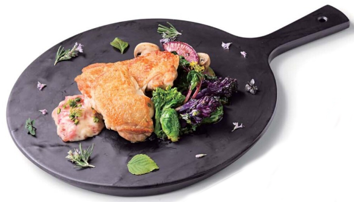 メラミン うちわプレート 黒マットは、天然石のスレートを模したメラミン樹脂製プレートです。高級感があり、3サイズ揃っていますので、和洋中どんな料理にでも使用できます。天然石のように割れないので取り扱いが楽です。食器洗浄機対応なので営業用に最適です。