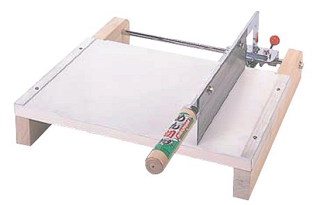 そば、うどん等を同じ太さで早く切るには、麺切り台が便利です。麺の切幅は調整爪で変えられます。