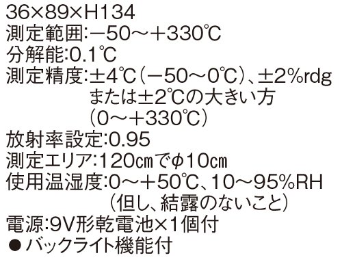 放射温度計IR-210は、ピンポイント測定が可能な放射温度計。離れた場所の表面温度を素早く測定できます。分解能0.1℃の高性能を誇ります。なお、体温は測れません。